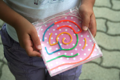 készítettem úgy, hogy a Bendaroos-szálakat rányomogattam a műanyag