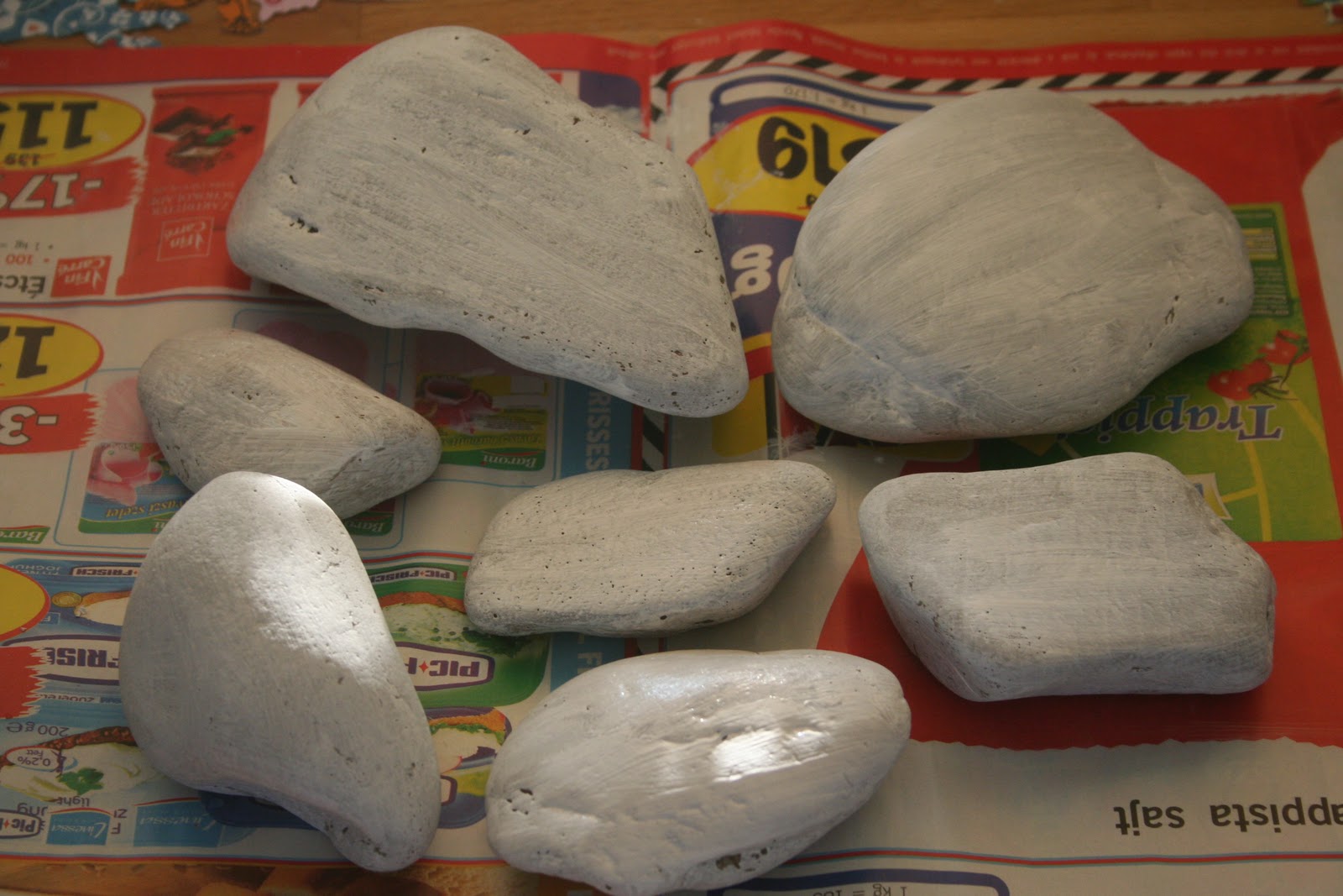 csak néhány nagyobbacska kőre, fehér alapozó akrilfestékre, ecsetre és