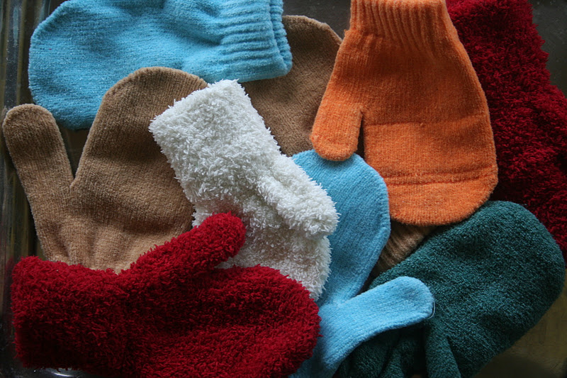 egyujjas kesztyűket, fél zoknikat, lencsét/sárgaborsót/rizst, préselt